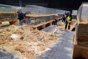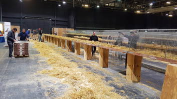 Der Aufbau für die Schau ist bereits eine Woche vorher kurz vor dem Jahreswechsel erfolgt. Etwa 180 Helfer haben die Käfige für die 4.000 Kaninchen aufgebaut und mit Stroh, Heu und den notwendigen Futterbechern für eine optimale Versorgung der Tiere bestückt.